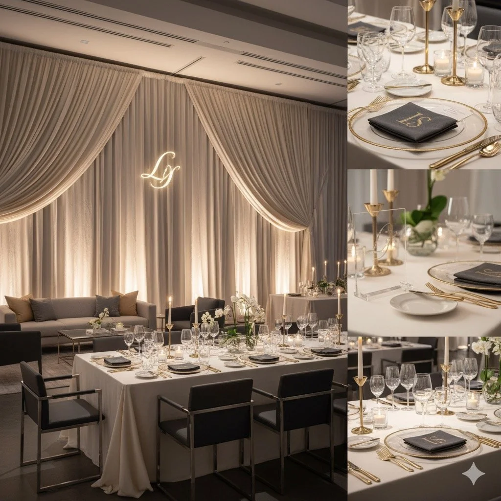At Luxe Settings by Kerra, every design is approached like an art form — intentional, balanced, and visually captivating. From intimate dinners to full-scale celebrations, our services are tailored to bring your vision to life with sophistication, harmony, and an unmistakable sense of quiet luxury.